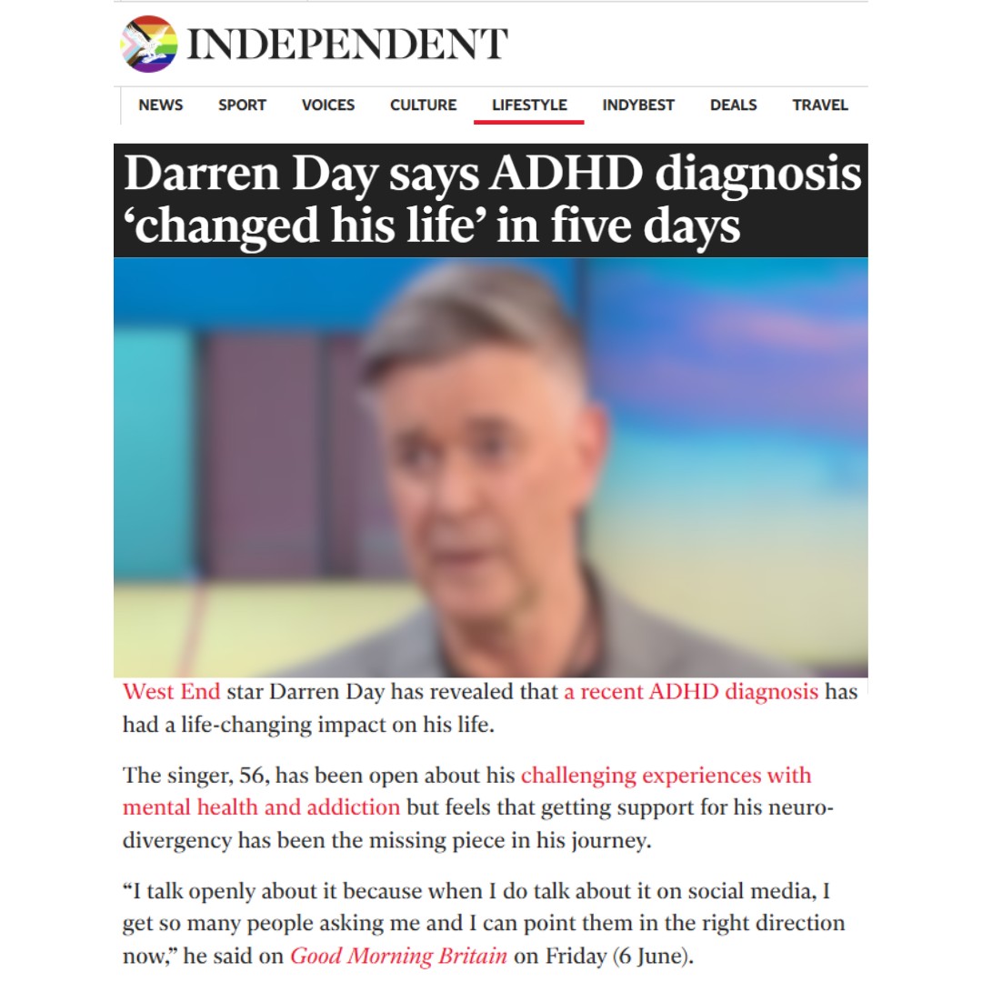 West End star Darren Day, 56, has described receiving an ADHD diagnosis in February as life-changing — within just five days of starting treatment, he felt his mind “quiet” for the first time in two decades and regained focus. Previously diagnosed with conditions including borderline personality disorder and bipolar II—and having battled addiction—Day says ADHD was “the missing piece” in his mental health journey.